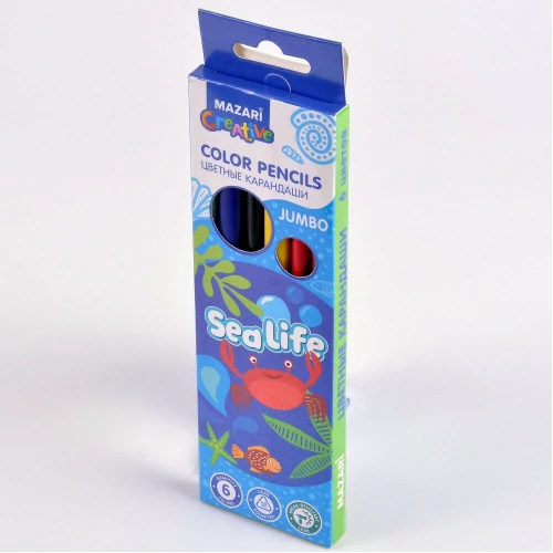 Карандаши цветные деревянные SEA LIFE, Jumbo, 6 цв., трехгранный корпус, d грифеля = 4 мм, картонная упаковка с европодвесом